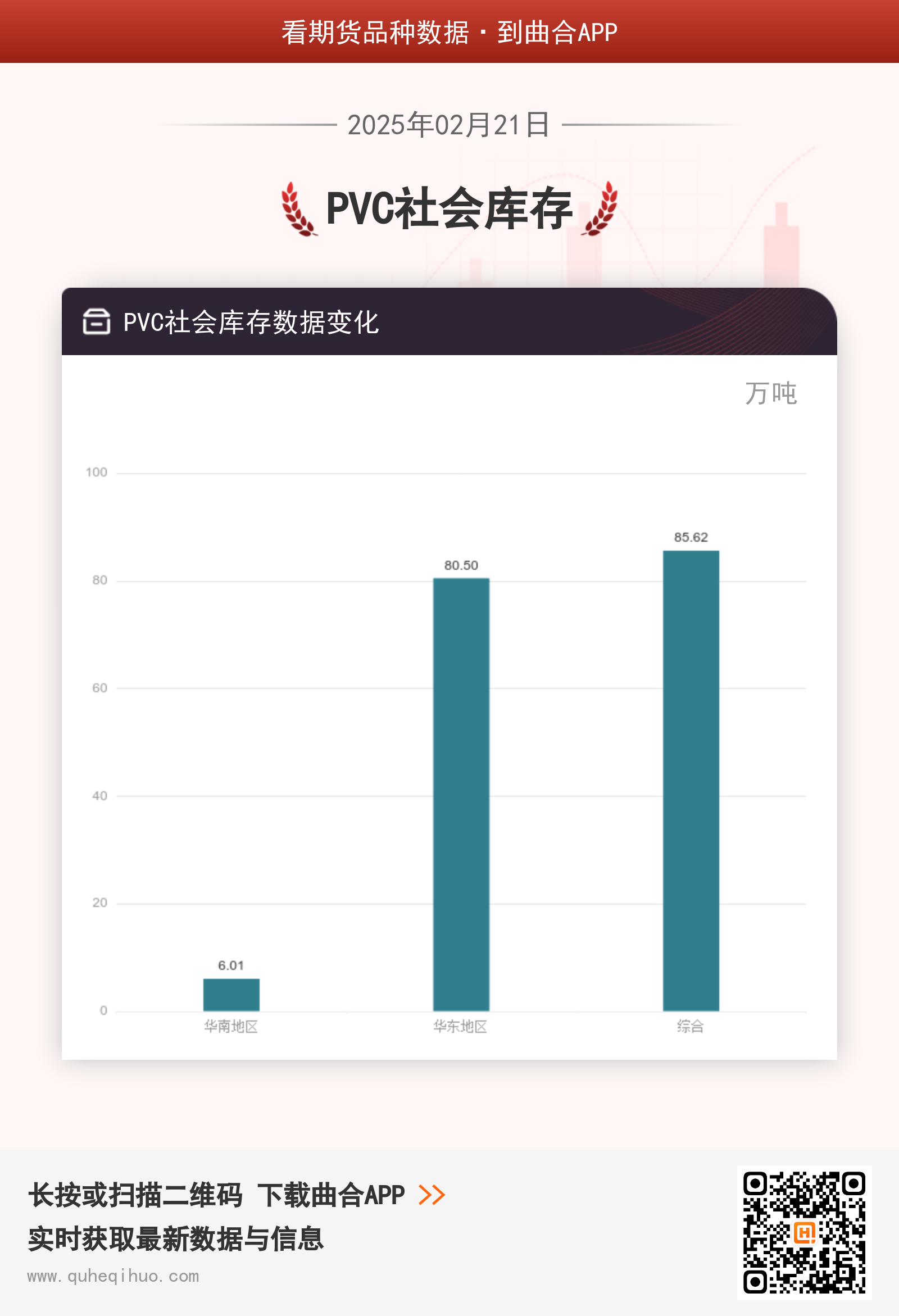 截止2月21日,华南地区库存为6.01万吨,较上一周增加0.01万吨,环比涨幅0.17%。华东地区库存为80.50万吨,较上一周增加0.88万吨,环比涨幅1.11%。综合库存为85.62万吨,较上一周增加3.33万吨,环比涨幅4.05%。